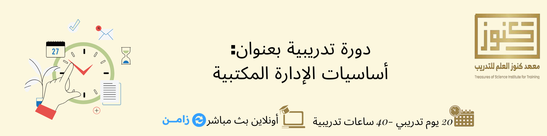 تعلم واستخدام أدوات وتقنيات العمل المكتبي (إدارة الوقت، نظم الأرشفة الورقية والإلكترونية، وبرامج المكتب والتعاون الإلكتروني) لرفع الإنتاجية وتقليل الأخطاء وتسريع الوصول إلى المعلومات.