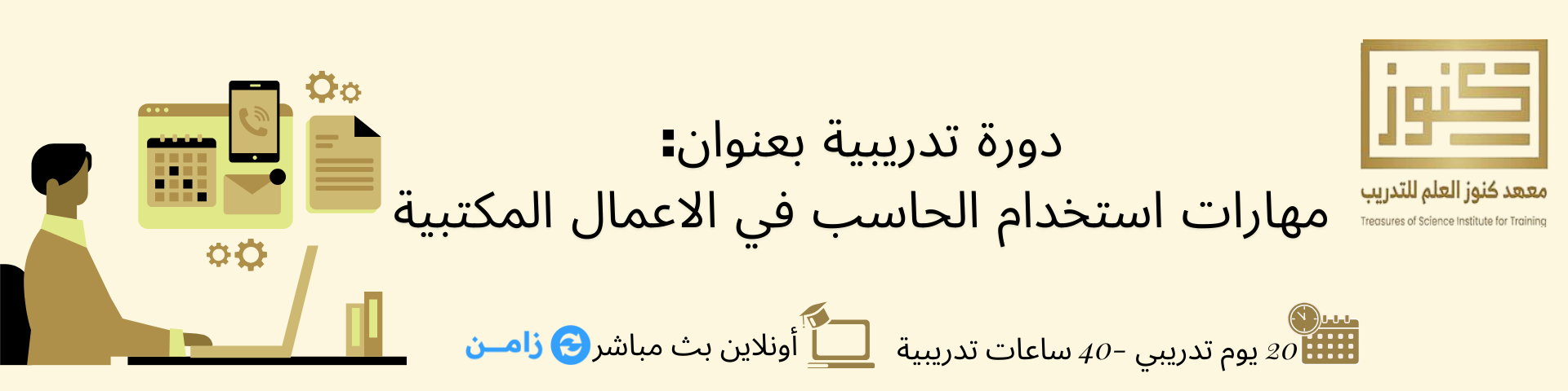 * الفئة المستهدفة: المهتمون باكتساب مهارات الحاسب الآلي الأساسية، والباحثون عن العمل، وموظفو الأعمال المكتبية والإدارية، وكل من يسعى لتطوير مهاراته التقنية في بيئة العمل.